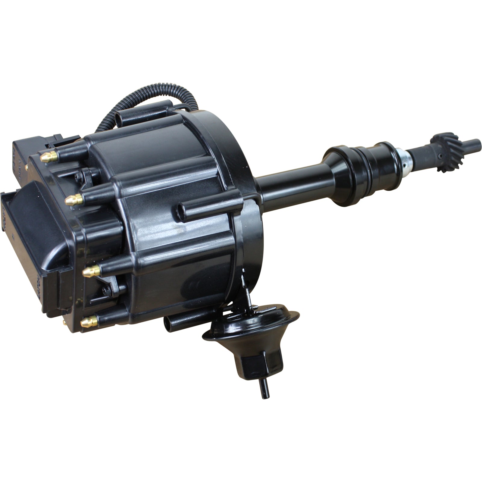 •FEATURES: All-in-One HEI design, CNC machined aluminum for exact fit highly durable non-corrosive housings, simple 1-Wire Hook-up, adjustable vacuum and mechanical (bushings not included) advance, welded weight pins, hardened steel shaft, Brass terminals, high output 65kV ignition coil, and HEI pigtail harness. Comes exactly as pictured.