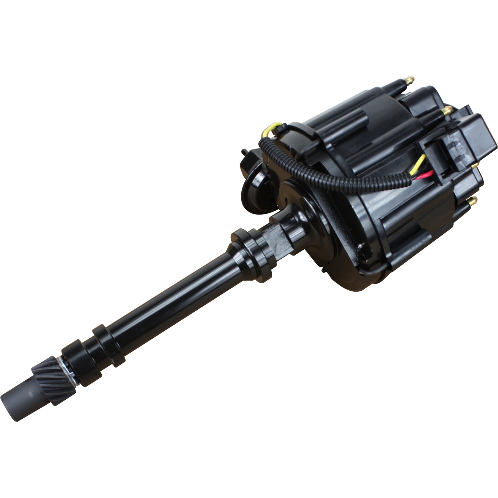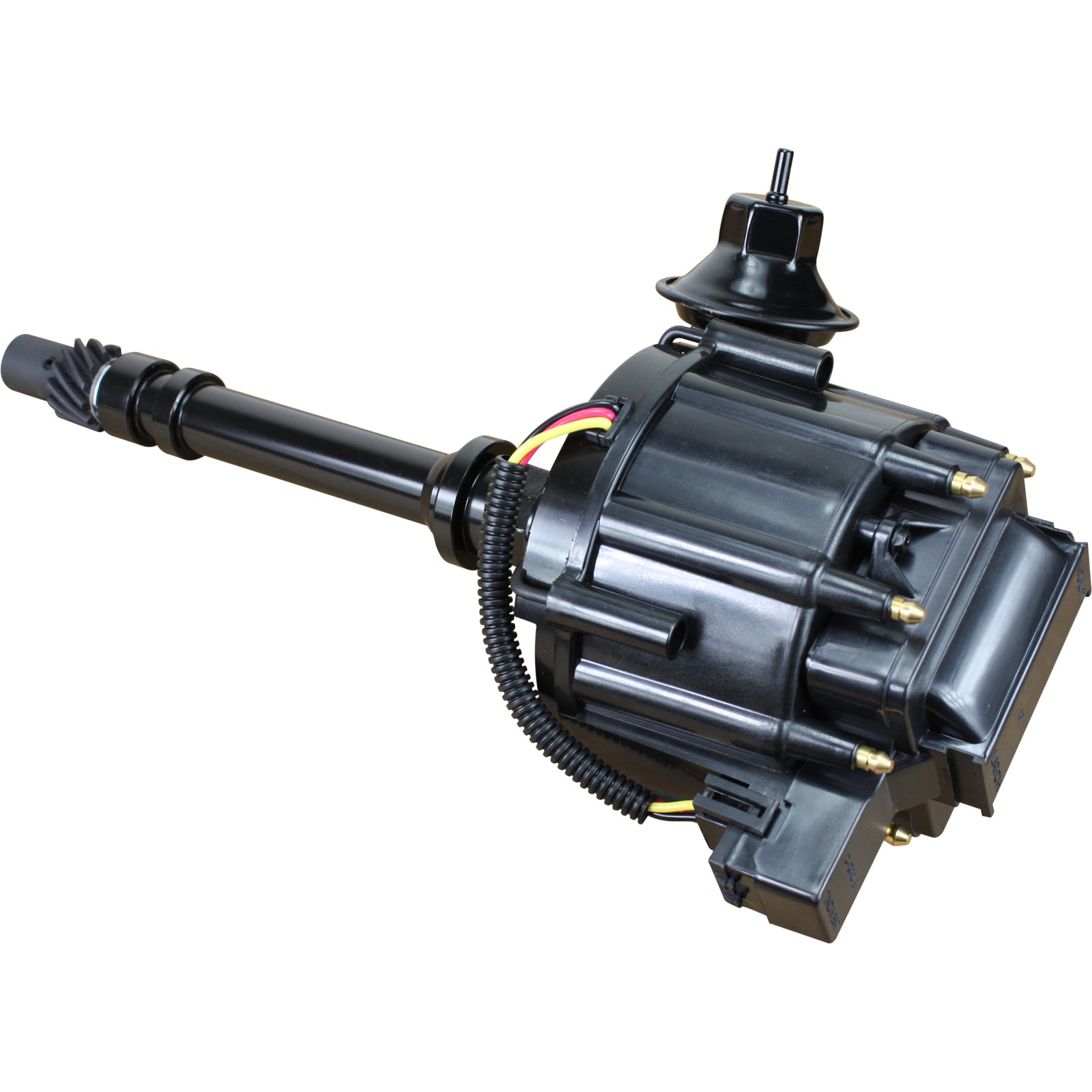 •FEATURES: All-in-One HEI design, CNC machined aluminum for exact fit highly durable non-corrosive housings, simple 1-Wire Hook-up, adjustable vacuum and mechanical (bushings not included) advance, welded weight pins, hardened steel shaft, Brass terminals, high output 65kV ignition coil, and HEI pigtail harness. Comes exactly as pictured.