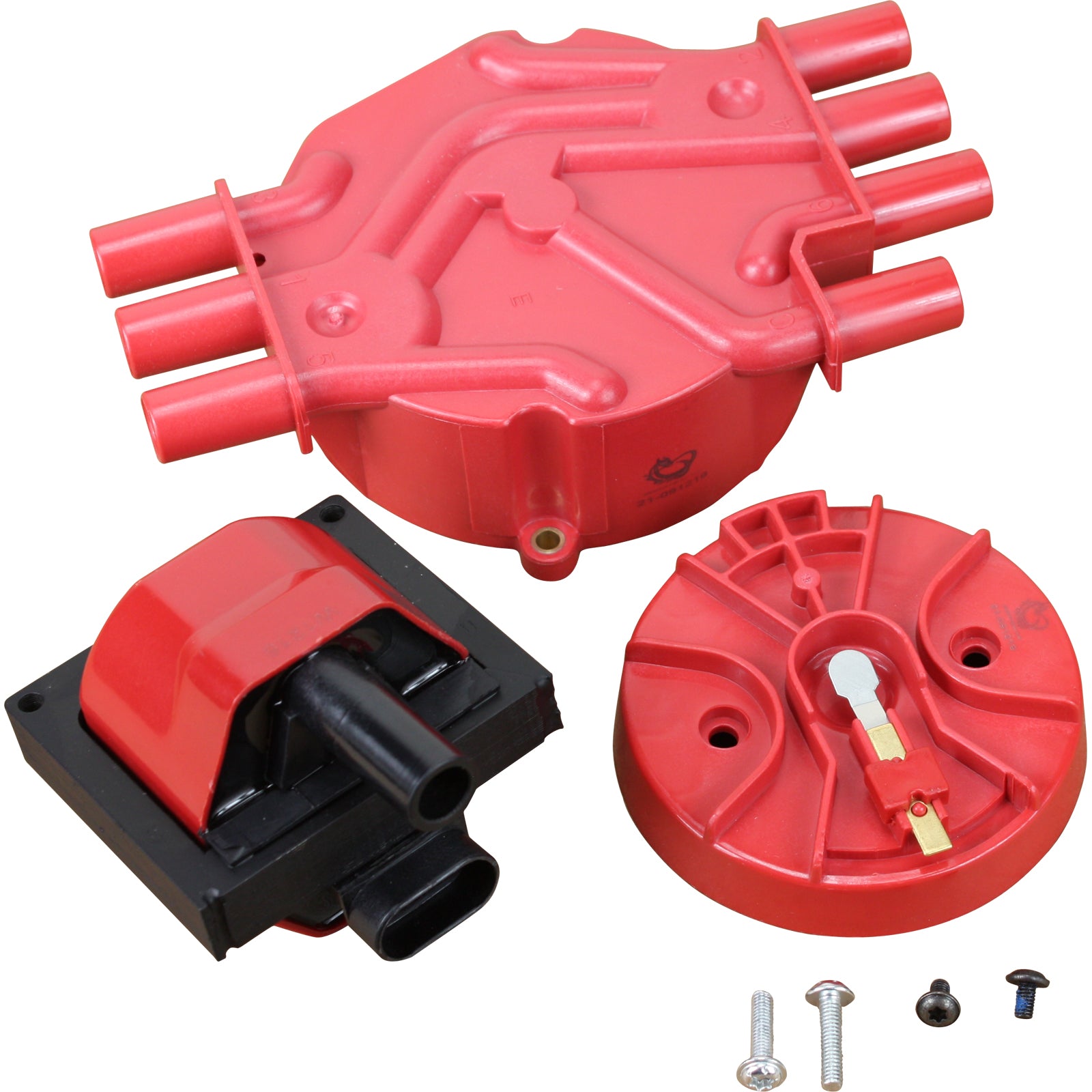 Dragon Fire Performance complete ignition tune up kits deliver industry leading performance quality craftsmanship and long-term reliability. No need to search around for each part required and dealing with multiple sellers. Kit comes complete with heavy duty cap, rotor, and performance coil. Featuring precision molded thermoplastic cap and rotor to resist fracturing and cracking from the constant heat cycling, brass terminals supports high spark output. At the core delivering the power is Dragon Fire's performance ignition coils. Designed to exceed OEM specifications with long term reliability in mind. This is a direct replacement OE fit tune up kit. Comes Complete as pictured. *Be sure to check the vehicle fitment section to verify proper fitment for your vehicle.
