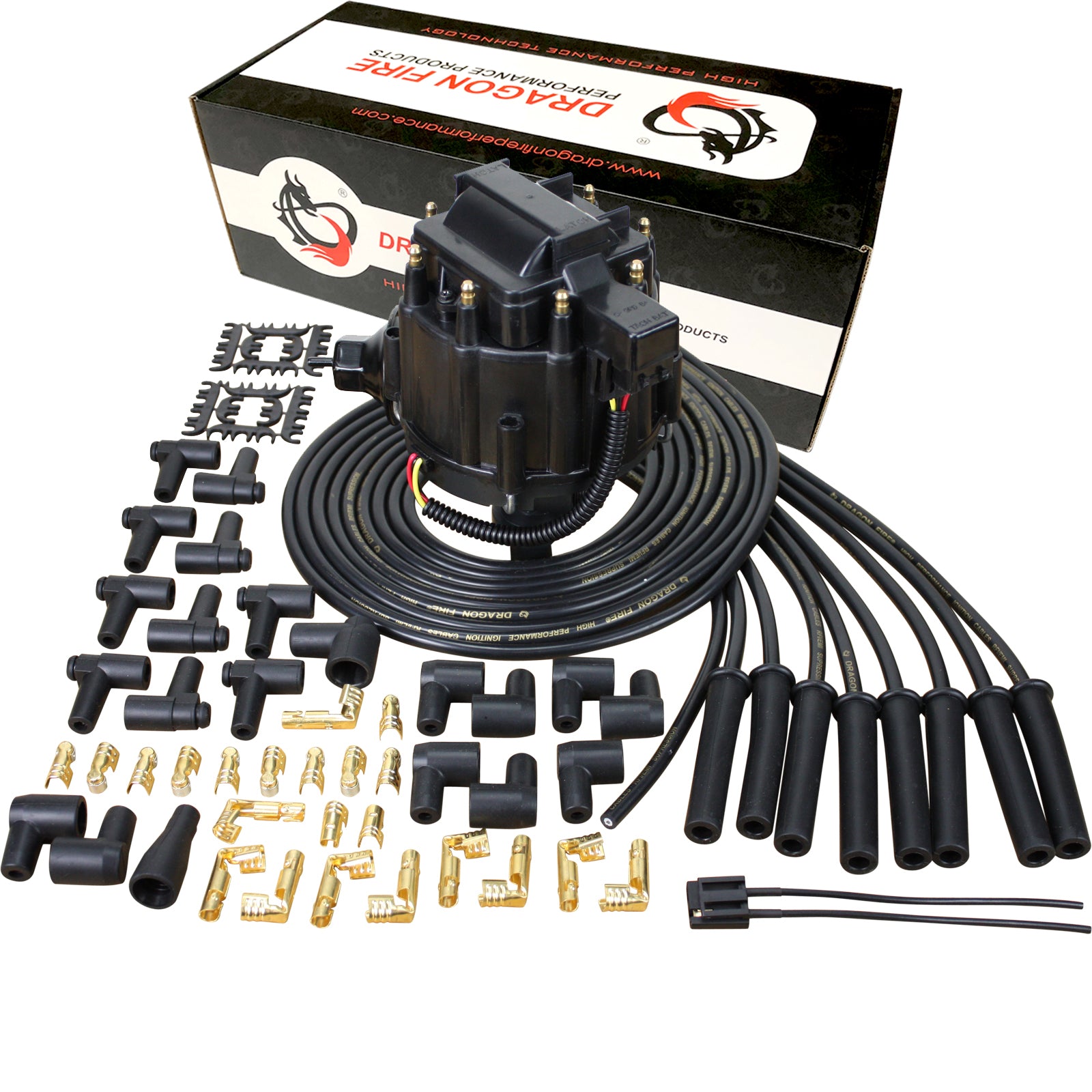 Dragon Fire Performance All In One HEI Ignition Distributor and 180° Spark Plug Wire Set For Chevy 327 350 427 454 With Tach Drive V8