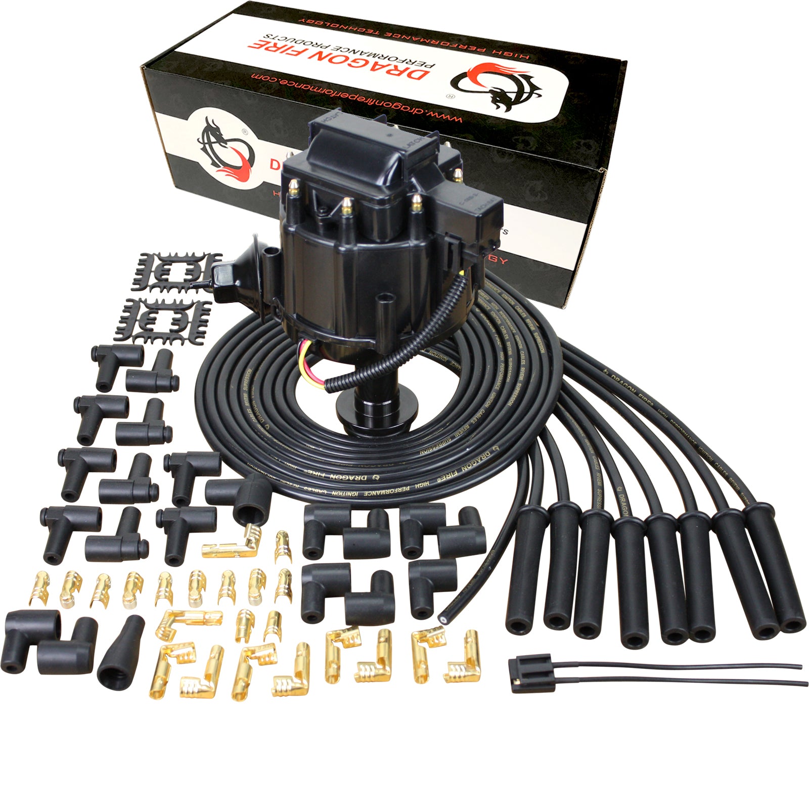 When it comes to replacing your ignition system, trust in Dragon Fire Performance’s HEI distributor kits. With all in one construction and simple 1-wire hook up. Installation is a breeze for any DYI weekend or professional mechanic. Dragon Fire Performance HEI’s are simply the best choice over higher priced ignition systems and cheap Chinese knockoffs. All distributors are carefully assembled using only the highest quality parts available. For a long-lasting dependable ignition system for street and track use. All Dragon Fire Performance HEI ignition distributors feature CNC machined aluminum housings for an exact OEM fit with corrosion free durability. Other features include hardened steel shaft, precision upper and lower bushings, welded weight pins, premium grade 4-pin module, high output 65k ignition coil, adjustable vacuum and mechanical (bushing not included) advance, brass terminals, and direct replacement drive gear. Ready for installation straight out of the box. Comes complete with HEI pigtail, gasket or O-ring, vacuum adjustment tool, and detailed instruction guide for a simple plug and play install. Also Included with your distributor is a set of Dragon Fire Performance’s Street Series low Ohm custom cut-to-fit spark plug , featuring a Kevlar® core, low resistance spiral wound alloy conductor, RFI/EMI Suppression, and extra thick silicone and EPDM insulation sleeve for superior protection against voltage leaks and engine heat. Terminals are protected by extra thick high-temp silicone boots to ensure optimal spark delivery and extended service life. Heat Rated to 600° F *See Fitment Guide and part numbers to confirm this is the correct part before purchase.*