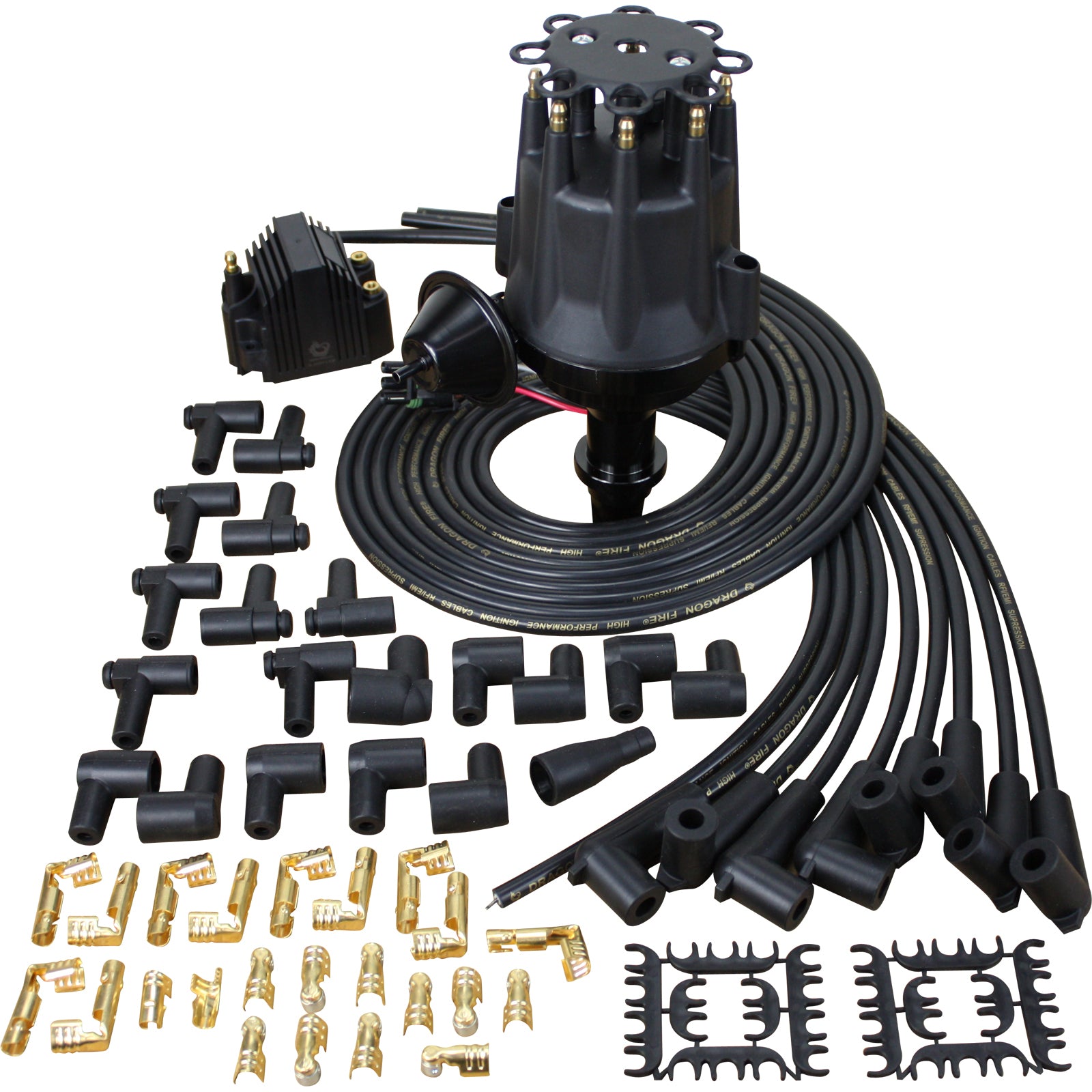 Dragon Fire Performance Pro Series Ready To Run Ignition Distributor Coil & 90° Spark Plug Wire Set For SBC BBC 262-283 302-350 383 396 400 402 427 454