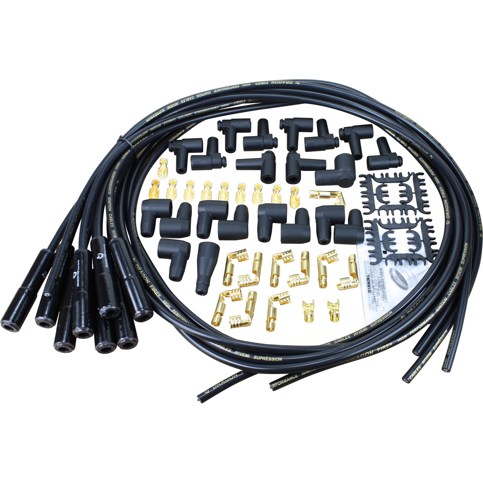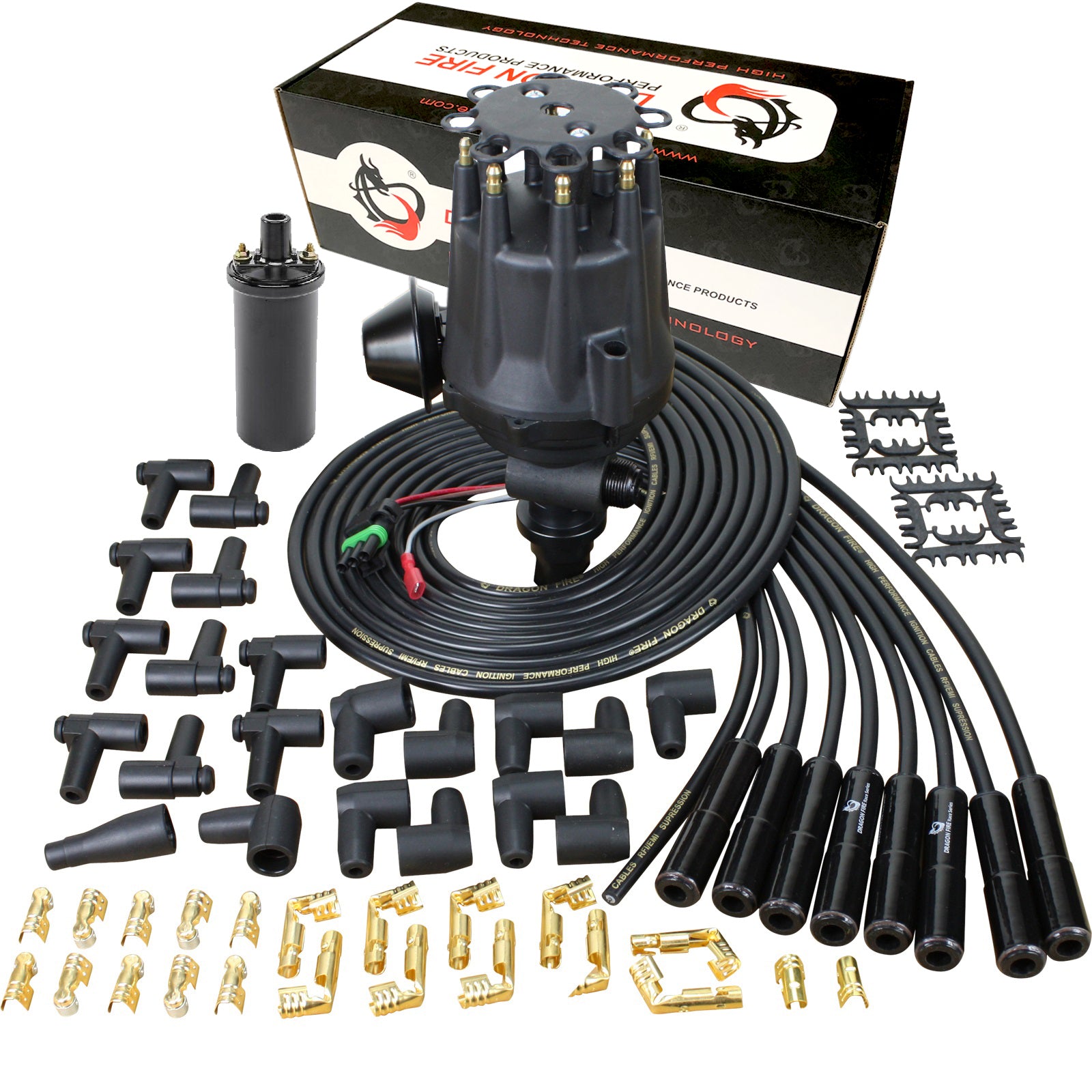 Dragon Fire Performance Pro Series Ready To Run Ignition Distributor Coil and 180° Ceramic Plug Wire Set For Chevy 327 350 427 454 With Tach Drive V8