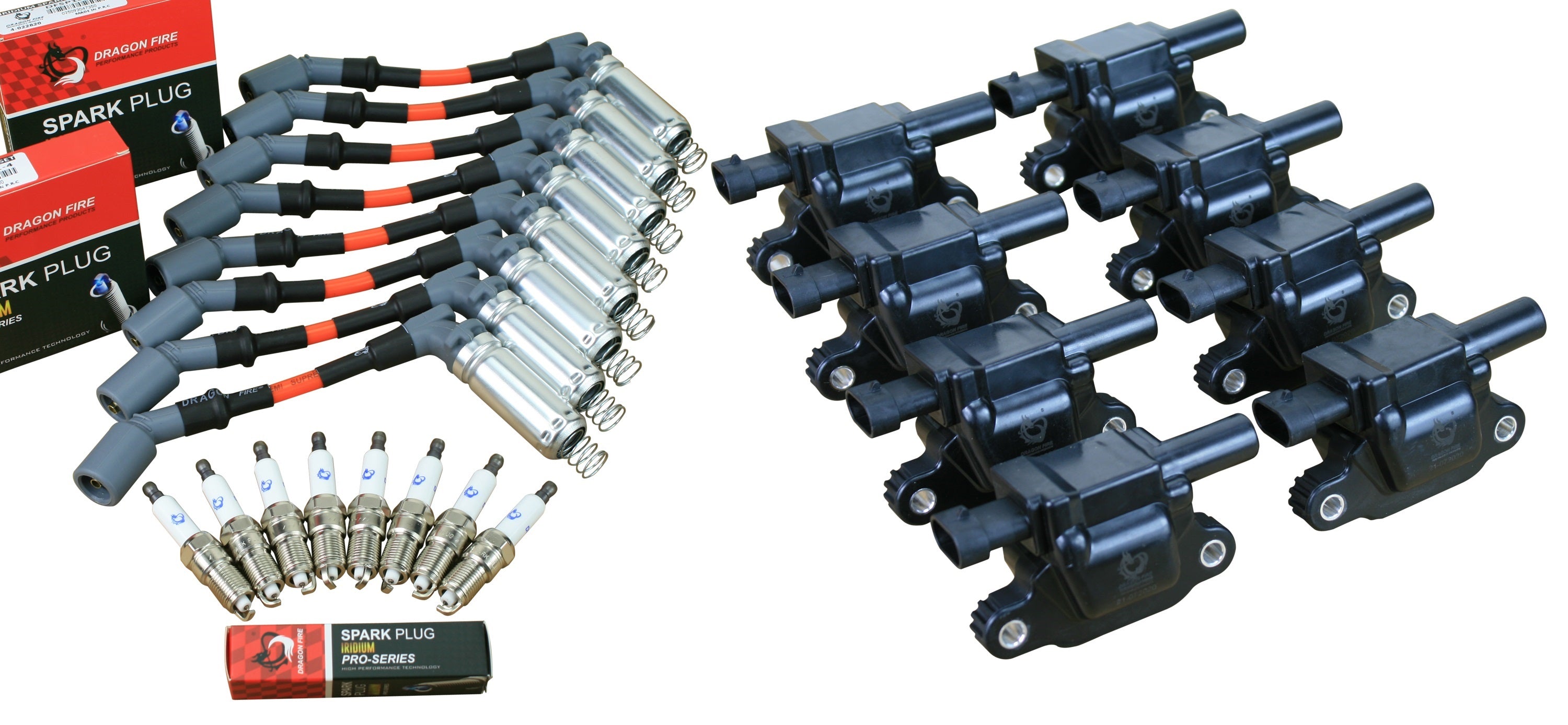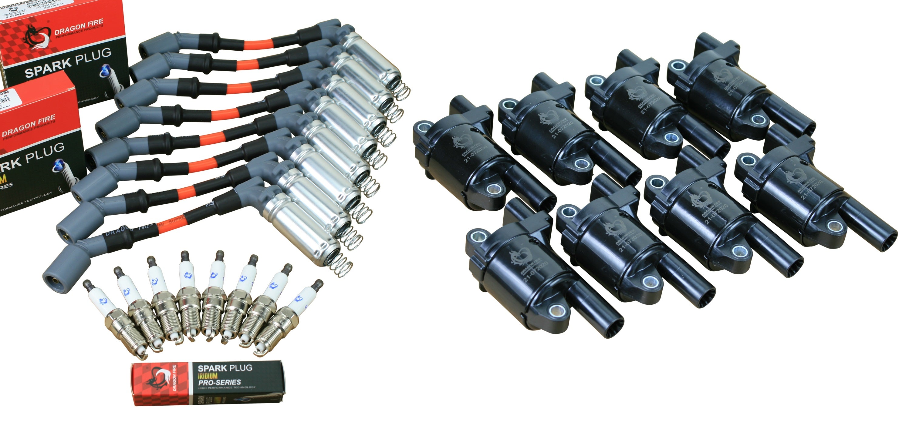 New Dragon Fire Performance Tune Up Set Ignition Coils Iridium Spark Plugs and 8.5" Spark Plug Wires For 2014-2021 Cadillac Chevy and GMC 5.3L 6.2L 6.6L V8