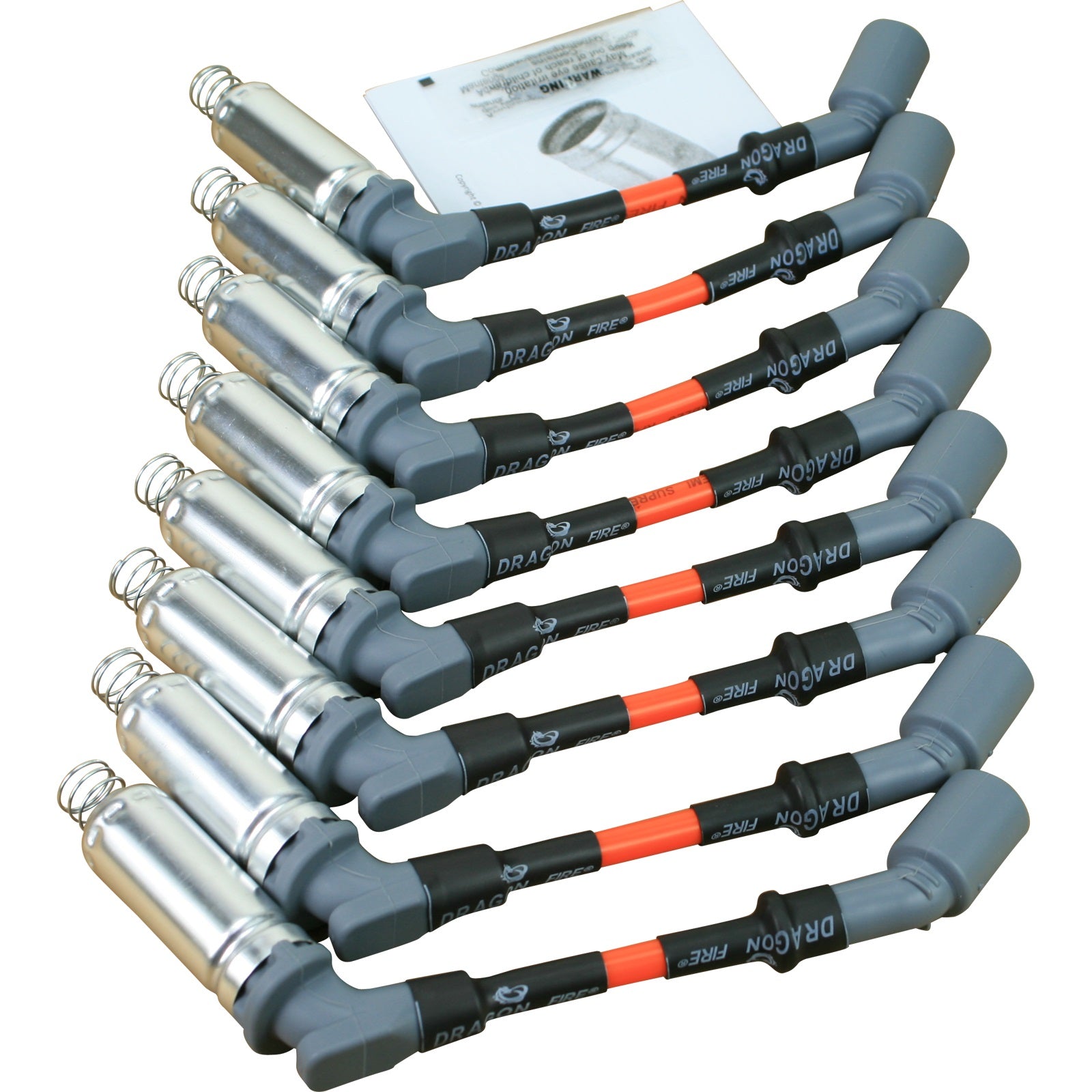 Dragon Fire Performance ignition tune up kits deliver industry leading performance, quality craftsmanship, and long-term reliability. At the core of the kit is high performance plug wires featuring a strong Kevlar core with a low resistance spiral wound alloy conductor, tightly wrapped for maximum spark energy transmission up to 80,000 VAC. Handling the increased energy is Dragon Fire’s Iridium performance spark plugs, featuring the latest evolution in electrode technology, allowing for quicker cold starts and faster acceleration, designed to conduct electrical energy better and last longer than OEM plugs. Delivering the power is Dragon Fire's performance ignition coils, designed to exceed OEM specifications with long-term reliability in mind. This is a direct replacement tune up kit. Comes Complete as pictured. *Be sure to check the vehicle fitment section to verify proper fitment for your vehicle.
