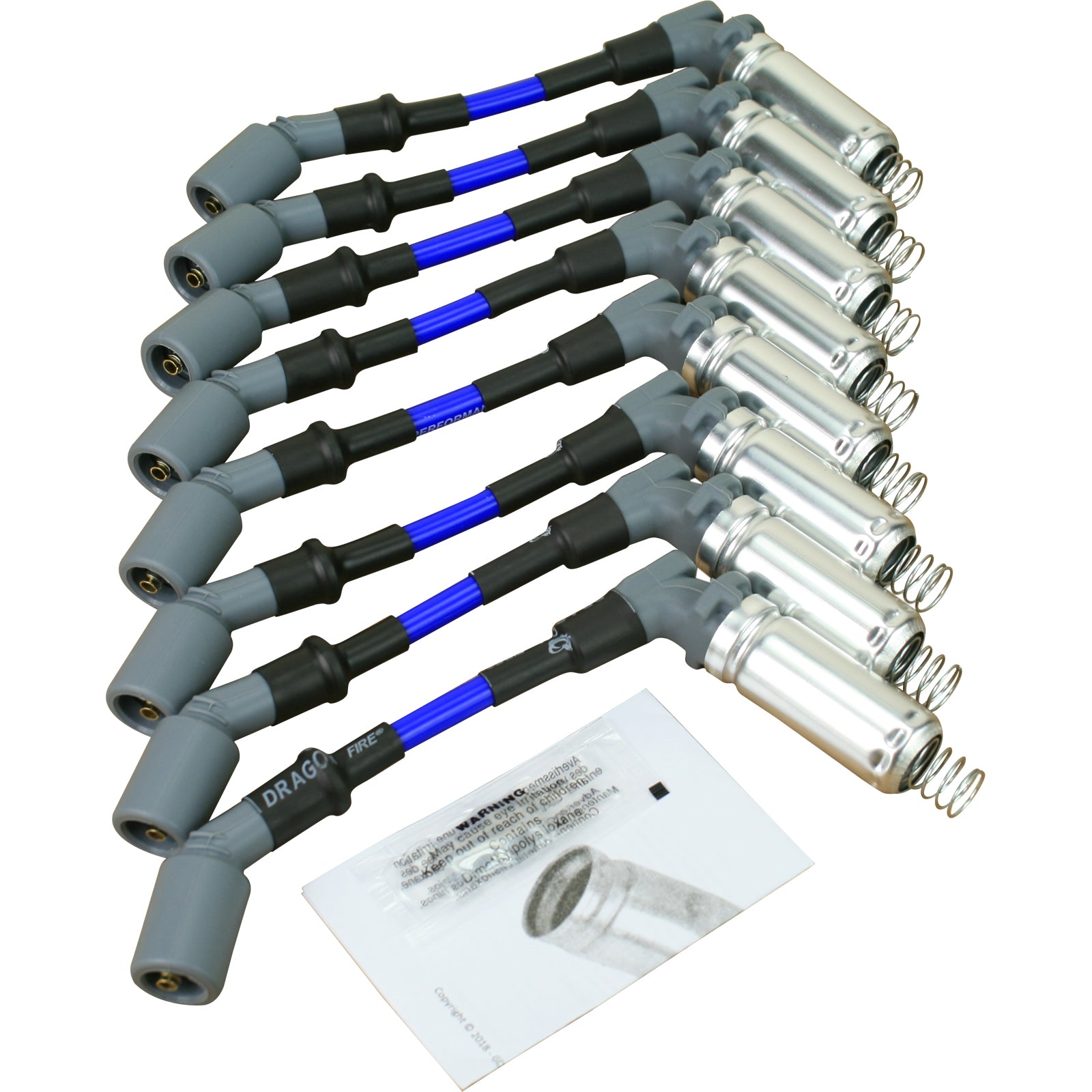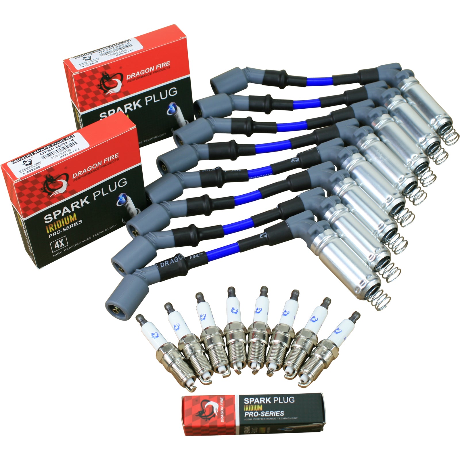 New Dragon Fire Performance Tune Up Set Spark Plugs and Blue Low Ohm Spark Plug Wires For 2003-2008 Saab Buick Isuzu Chevrolet Cadillac GMC Pontiac Hummer V8 LS